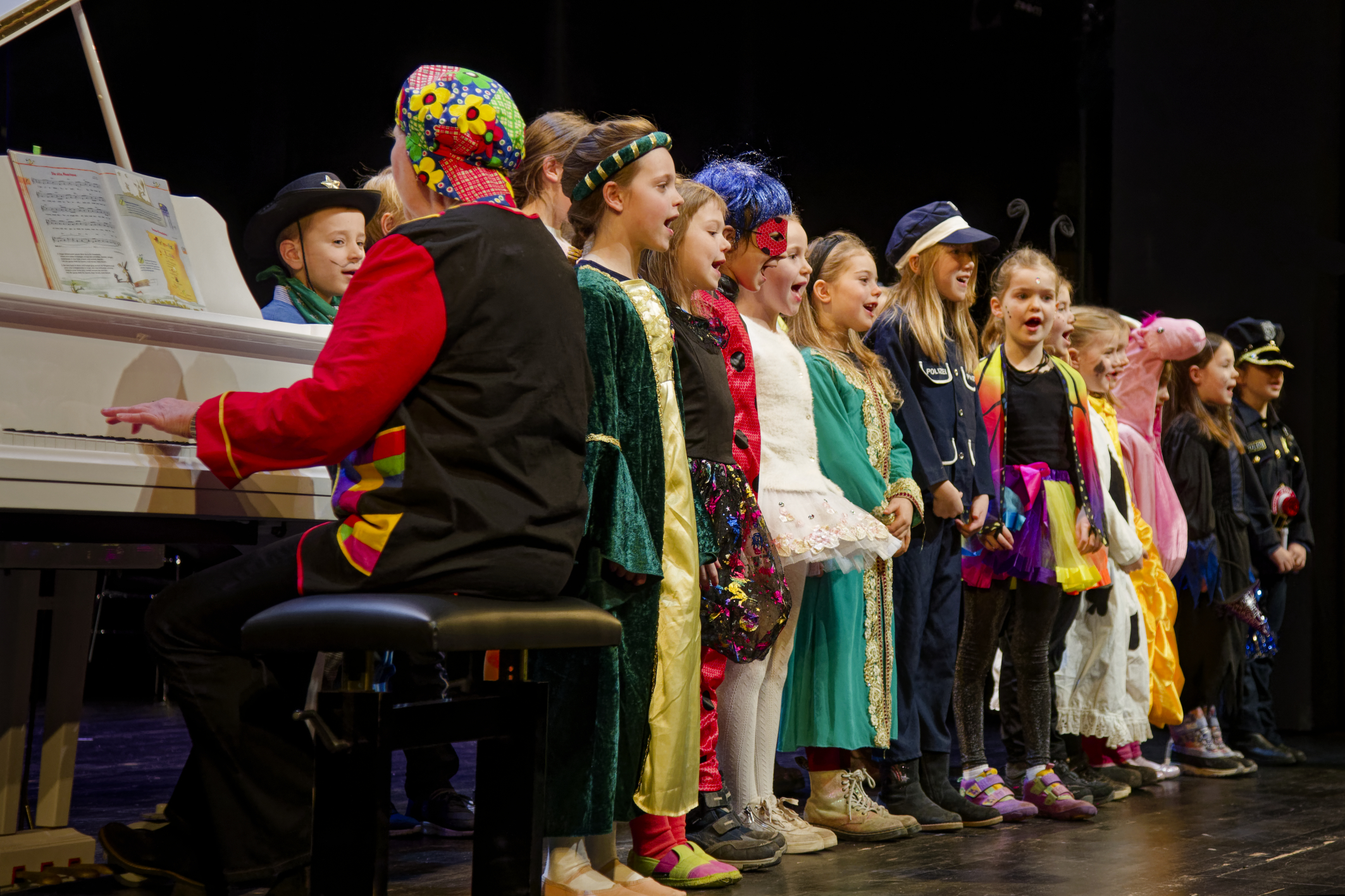 Beim traditionellen Faschingskonzert führte Musikschulleiter Folko Jungnitsch alias Clown Folkone, begleitet von seinen Kolleginnen Mechthild Kiendl, Susanne Savage und Linda Suschko, durch ein buntes Programm der jüngsten Schülerinnen und Schüler der Musikschule Pullach.